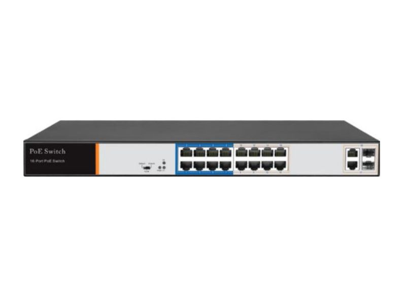 ptimus UMG1-18/16P_v.1 – 18-портовый неуправляемый PoE-коммутатор. Коммутатор оснащен 18 портами 10/100 Мбит/с с поддержкой PoE (технология передачи питания по сетевому кабелю вместе с данными) к каждому из которых можно подключать сетевые устройства (IP-камеры, IP-телефоны, беспроводные точки доступа).
