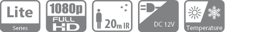 Камера Матрица 1/2.7" 2 Mп CMOS Пиксели 1920 x 1080 Минимальная освещенность 0.02 Лк / F2.0, 0 Лк при ИК вкл. Электронный затвор 1/25~1/100.000 с Частота кадров 720P (25/30/50/60 к/с), 1080Р (25/30 к/с) Синхронизация Внутренняя Видеовыход 1 канал BNC высокой четкости/ 1 канал CVBS стандартный (с возможностью переключения) Функция день/ночь Механический ИК фильтр Объектив Тип объектива Фиксированный Фокусное расстояние f= 2.8 мм Угол обзора 104º Крепелние М12 ИК-подсветка Дальность действия Smart-ИК До 20 метров Функции День/ночь Авто (ICR)/цвет/чёрно-белый Цифровое подавление шумов 2D DNR Расширенный динамический диапазон DWDR OSD-меню Для управления камерой Передача сигнала До 500 метров через 75-3 коаксиальный кабель Общие Материал Пластик Питание DC 12 В (+/-25%) Потребляемая мощность Макс. 2.8 Вт Рабочие условия -40°C...+55°C Влажность 0%-95% Размер Ф 85 х 69 мм Вес 150 грамм -